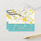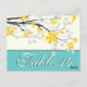Magnolia flowers yellow turquoise wedding custom floral table number postcard, featuring a beautiful magnolia branch with yellow flowers, buds, a bird and turquoise solid color at the bottom. Ivory, yellow, turquoise, black, grey. Great for a spring or summer wedding.