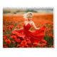 This romantic 2026 calendar features women in flowing dresses surrounded by vibrant flower fields. Each month highlights a different color harmony – a lavender dress drifting through purple lavender rows, a red gown glowing in a sea of poppies, a golden dress shining in bright rapeseed fields, and other dreamy floral landscapes. Soft light, graceful movement, and rich colors create a serene, artistic atmosphere. Perfect for lovers of feminine aesthetics, nature photography, fashion art, and decorative home décor.
