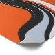 The design features a striking abstract composition of flowing, wave-like curves in bold orange, deep black, bright white, and soft gray. The lines twist and sweep diagonally across the canvas, creating a dynamic sense of motion and rhythm. The contrast between light and dark tones emphasizes the fiery orange, giving the artwork an energetic and fluid appearance. The overall effect is reminiscent of flames, liquid movement, or a powerful stream of energy captured in motion.