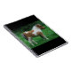 This little pony is so gosh darn cute he looks like a living doll! Multicolored in white and brown markings. He's a dartmoor pony and can be seen standing in bright green grass with some trees and bushes in the background. His hair looks so soft and fluffy and he has a cute little gray tail. Pony fans will surely love this.