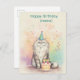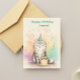 Fluffy Birthday Cat – Party Hat Cat with Cake Postcard