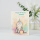 This charming illustration shows a long-haired cat wearing a playful party hat, sitting proudly next to a birthday cake topped with lit candles. Surrounded by pastel confetti, it’s a fun and heartwarming design for cat lovers and anyone who enjoys a lighthearted celebration.