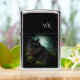 Dark enchanted looking woods with butterflies and hanging moss from the trees. A slight blue light through the trees backdrops this beautiful feline as it sits watching captivatingly through gold eyes.