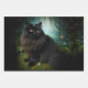 Fluffy Black Cat in Misty Woods Name Front Wrapping Paper Sheets