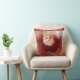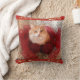 Fluffy Cat and Red Ribbon Throw Pillow