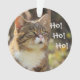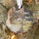Cute fluffy cat with green eyes on Christmas tree ornament.