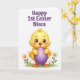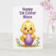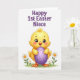 Designed with a bright, fluffy yellow chick centered on a white background, this illustration leans into the gentle charm of spring. The chick has large dark eyes with tiny highlights, a small smile, and rosy cheeks that make it look tender and friendly, as if it’s sharing a quiet moment with someone close. It holds a speckled lavender egg close to its body like a treasured gift, adding a soft romantic or best-friends feel through the careful, protective pose 🐣🌷. Beneath the chick, a patch of green grass stretches across the lower area with fine painted texture that suggests fresh growth. Small white daisies with sunny yellow centers peek up through the grass, adding little accents that echo the chick’s warm coloring. Near the top, a short celebratory message appears in purple lettering, centered above the character and matching the egg’s hue. The chick’s feathers are shaded with gentle gradients and light highlights, and the lavender egg has a glossy sheen with darker speckles scattered across its surface.