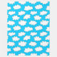 A repeating pattern made up of little fluffy cartoon clouds on a blue sky.