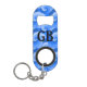 Keychain bottle opener with fluffy spiral clouds pattern in shades of blue. Make it personal and monogram with your initials.