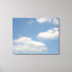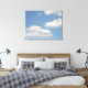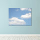 This awesome canvas print features a photograph of some fluffy white cumulus clouds floating leisurely across a beautiful blue sky.