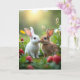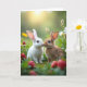 This design shows two young rabbits 🐰 in the center, a snowy white one leaning in to touch noses with a caramel-brown companion, their whiskers nearly meeting like a quiet little secret between friends. Soft light from above gives their fur a gentle glow and makes the edges of their ears look slightly translucent. Around them, deep green leaves fill the scene, dotted with small red berries that add bright points of color near the foreground. The background fades into a smooth blur of greens and warm yellow tones, with a few pale blossoms peeking through for a springtime feel 🌷. Their dark, round eyes hold an attentive, affectionate look, as if they’re pausing mid-exploration just to check in with each other. Any greeting text would sit neatly at the top in a light pastel shade, with a smaller line near the bottom in soft gray to keep the photo front and center. In the lower corners, a few glossy berries and curled leaves frame the rabbits against the softly blurred greenery.