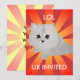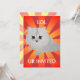 An adorable fluffy white kitten on a vibrant red background. This cute invitation is perfect for any occasion! Original art © Lydia "PrairieGhost" Jacobs 2010