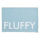 Pillowcase has large text that reads fluffy. Background color and text are customizable