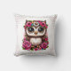 Fluffy Owl with Daisy & Rose Crown Throw Pillow