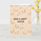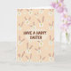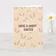 Designed with a soft peach-cream background, this card features a repeating scene of fluffy white bunny faces and small daisy-like flowers that feel like they’re gently drifting together 🌷. In the center, the words “HAVE A HAPPY EASTER” sit in deep brown, using simple, even lettering inside a rounded light-peach oval. Around the message, the bunnies have scalloped, cloud-like fur edges, long pinkish-brown ears, tiny yellow noses, and thin whisker lines that give them a sweet, attentive look 🐰. Some of the bunny faces peek in from the edges at slightly different sizes, like they’re leaning closer to be near one another. The little white flowers with sunny yellow centers are sprinkled between them, adding a fresh garden touch without crowding the design. Creamy whites, muted pinks, and warm yellows balance against the dark brown text, creating a gentle contrast that keeps the center message easy to spot. Several bunnies appear partially cropped at the borders, with ears angled inward toward the central oval.