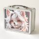 This is a standard metal lunchbox that appears to work just fine. We designed this box ourselves with an uploaded photo and custom text on the front and back. It looks absolutely beautiful except the front of the lunchbox is not centered like it shows in the photo. The print borders don't align with the inset flat part of the box where the preview photo online showed it perfectly centered in there. The back looks nice and centered though.