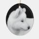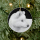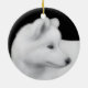 Original painting of a fluffy white Samoyed dog by artist Carolyn McFann of Two Purring Cats Studio printed on a quality holiday ornament for all who love dogs.
