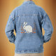 Fluffy Sitting White Bunny Orange Plants Denim Jacket