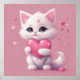 Fluffy White Love Kitten, this design features a cute and adorable Fluffy White Love Kitten holding a pink heart.