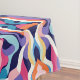 This design features a fluid, abstract pattern with a symmetrical, mirrored layout. Wavy, organic shapes interlock seamlessly, forming a bold yet harmonious composition. The color palette blends deep purples, blues, teals, pinks, and warm yellows, creating a lively contrast. The layered effect gives a sense of movement, almost like flowing liquid or undulating fabric. The soft curves and bold colors combine to evoke a mix of retro and modern aesthetics, reminiscent of psychedelic patterns or mid-century-inspired motifs.