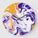 Fluid art texture. Abstract decor with swirling paint effect. Liquid acrylic artwork with flows and splashes. Mixed paints for baner or wallpaper. Purple, white and golden overflowing colors.