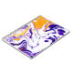 Fluid art texture. Abstract decor with swirling paint effect. Liquid acrylic artwork with flows and splashes. Mixed paints for baner or wallpaper. Purple, white and golden overflowing colors.