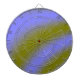 This awesome dart board features a digitally created image consisting of a series of wavy alternating blue and green blurred bands of color that resemble a series of fluorescent bands of cloud.