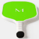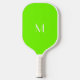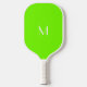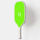 Pickleball Paddle with fluorescent green solid color background and white font .Simple and trendy design by Alma Wad .Personalize it with your monogram now ..