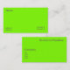 Business card in fluorescent green solid color background and gray fonts .Simple and trendy design by Alma Wad .Personalize both sides now .It comes 100 in a pack .