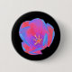 This pretty button features a beautiful photograph of a tulip. The photograph has been artificially coloured resulting in a fluorescent tulip. The outer petals are coloured with shades of blue and red, while the inner petals show shades of pink and purple. The very centre of the flower is bright yellow. The simple black background shows off the stunning beauty of this flower.
