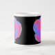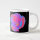 This awesome mug features a beautiful photograph of a tulip. The photograph has been artificially coloured resulting in a fluorescent tulip. The outer petals are coloured with shades of blue and red, while the inner petals show shades of pink and purple. The very centre of the flower is bright yellow. The simple black background shows off the stunning beauty of this flower.