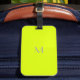 Luggage Tags with fluorescent yellow solid color background and gray font .Simple and trendy design by Alma Wad .Personalize it with your monogram now ..