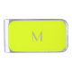 Money Clip with fluorescent yellow solid color background and gray font .Simple and trendy design by Alma Wad .Personalize it with your monogram now ..
