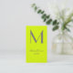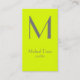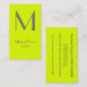 Vertical business card with a solid fluorescent yellow (#DFFF00) background and a bold monogram.Personalize both sides right now. Alma Wad's design is modern and stylish.It comes in a pack of 100.