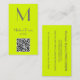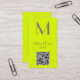 Vertical business card with a solid fluorescent yellow (#DFFF00) background and a bold monogram.Personalize both sides right now. Alma Wad's design is modern and stylish.It comes in a pack of 100.