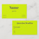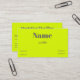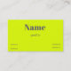 Business card in fluorescent yellow ( #DFFF00 )solid color background and gray fonts .Bold and trendy design by Alma Wad .Personalize both sides now .It comes 100 in a pack .