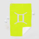 Golf towel with fluorescent yellow solid color background and light gray zodiac symbol of the Gemini .Simple and trendy design by Alma Wad .