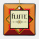 Flute text with a decorative line sporting a music note in a colorful block of warm colors is a unique gift design for woodwind musicians, music teachers and students in concert and marching band.