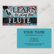Colorful arty Learn To Play Flute business cards in turquoise, aqua, red, yellow. Flute musical instrument instruction business cards.