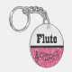 Lovely pink damask with music staff and Flute quote on acrylic keychain band gift for the flutist.