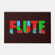 Flute text in colorful blocks surrounded by a hatch pattern is a unique gift design for woodwind musicians, music teachers and students in concert and marching band.