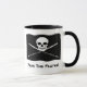 A great gift for flute players, this funny pirate flag with Skull and Crossed Flutes design has Fear The Flutes! music slogan on a handy morning mug.