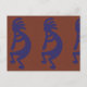 Flute Playing Kokopelli Figure - Blue on Rust Red Postcard