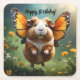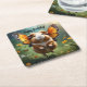 "Flutter Paws: The Guinea Pig Takes Flight" Square Paper Coaster