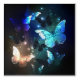 Fabulous, glowing, blue and yellow, night butterfly on dark background.