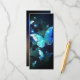 Fabulous, glowing, blue and yellow, night butterfly on dark background.