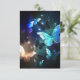 Fabulous, glowing, blue and yellow, night butterfly on dark background.