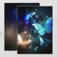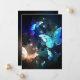 Fabulous, glowing, blue and yellow, night butterfly on dark background.