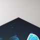 Fabulous, glowing, blue and yellow, night butterfly on dark background.