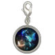 Fabulous, glowing, blue and yellow, night butterfly on dark background.